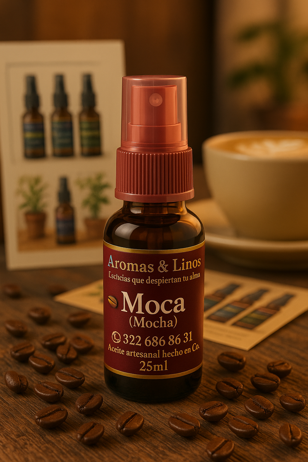 El Aroma Moca de Aromas & Linos es una esencia sofisticada que combina la intensidad del café con la suavidad del chocolate. Su fragancia envolvente, dulce y ligeramente tostada, crea un ambiente cálido y acogedor que inspira relajación, placer y elegancia en cada espacio.