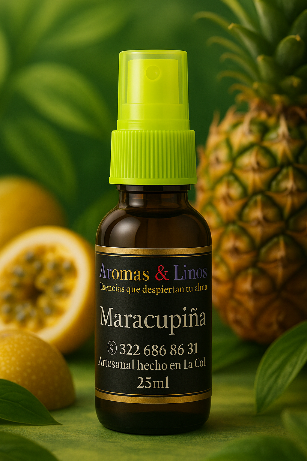 Déjate envolver por la frescura exótica y vibrante del Ambientador Maracupiña. Una combinación única de notas tropicales, frutales y ligeramente dulces que llenan el ambiente de energía, alegría y bienestar. Inspirado en la esencia jugosa de la maracuyá con un matiz delicado y refrescante, este aroma transforma cualquier espacio en un refugio de vitalidad y armonía natural. Ideal para hogares modernos, oficinas o espacios que buscan un toque sofisticado y auténtico.